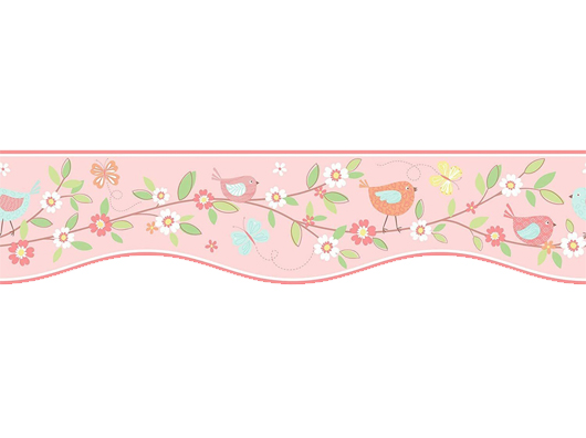 Children’s, Blooming Branches with Birds & Butterflies, Shaped Wallpaper Border
