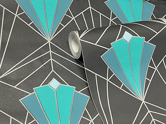 Blue Art Deco/Geo Style Textured Pattern Wallpaper