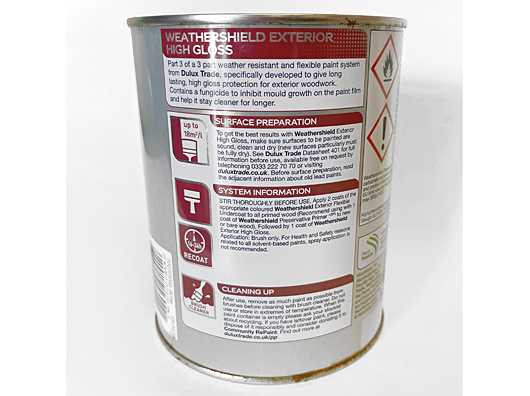 To get the best results with Weathershield Exterior High Gloss, make sure surfaces to be painted are sound, clean and dry (new surfaces particularly must be fully dry).