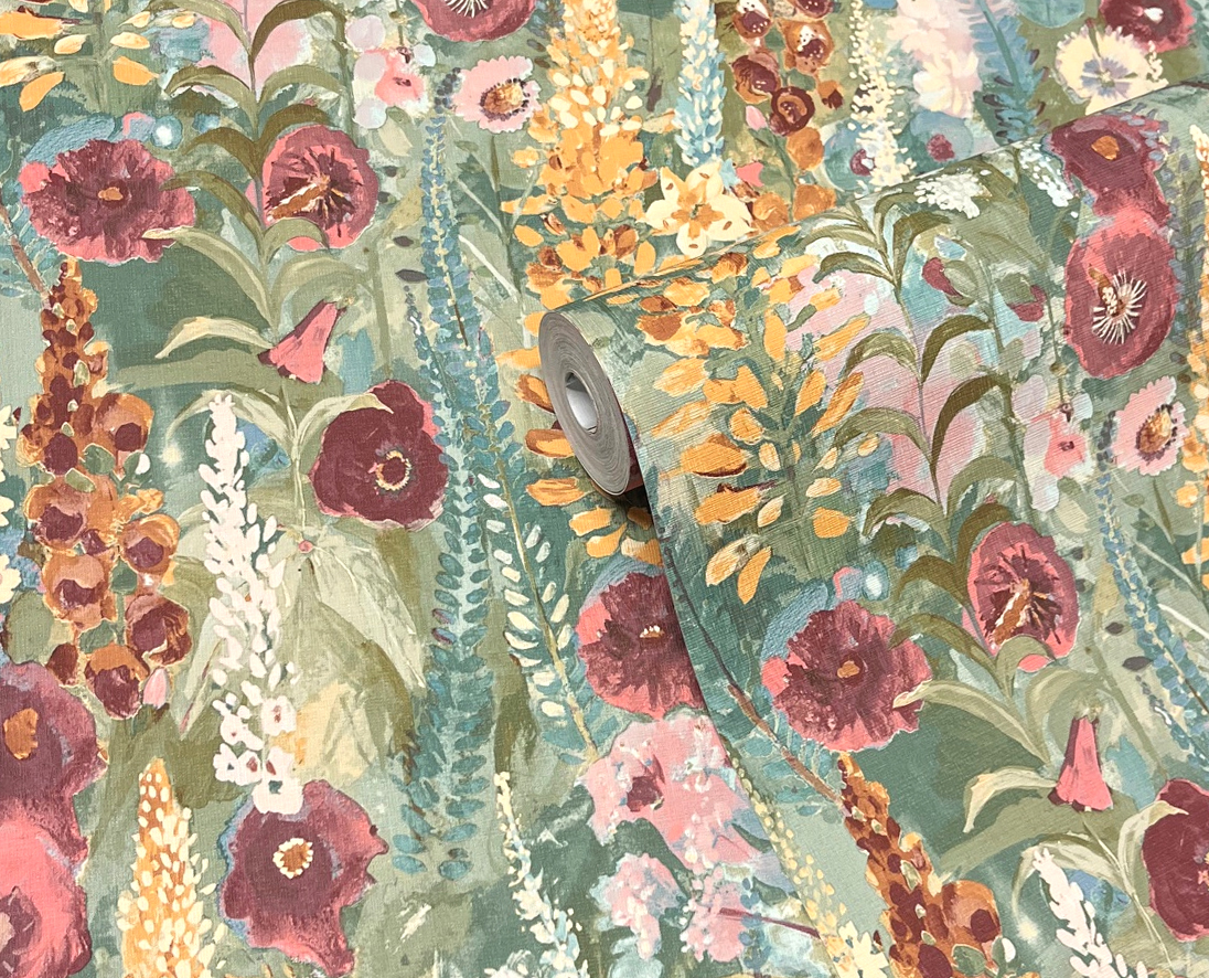Lush Floral Symphony Wallpaper (Green & Pink)